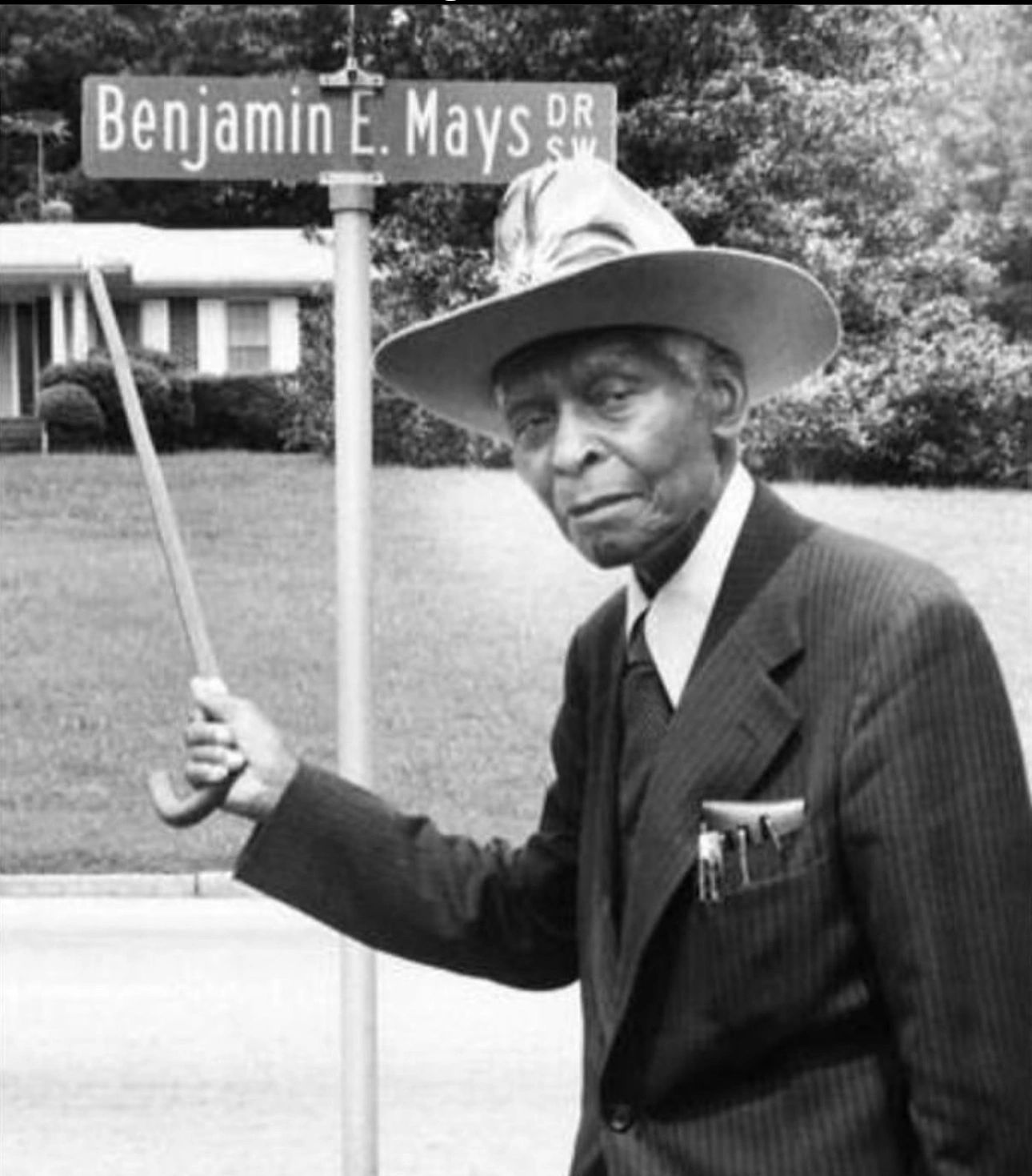 Photo: Dr. Benjamin E. Mays, former president of Morehouse College and influential civil rights leader, stands at the site of the former Sewell Road, renamed to honor his legacy in 1981.